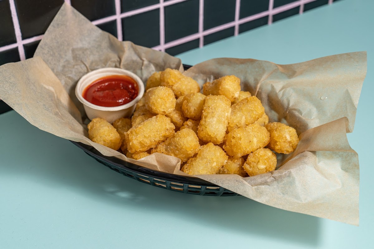 Complement your meal with TATER TOTS, the perfect crunchy side, or indulge in the CHEESE PUNNET, ideal for those who believe that there’s no such thing as too much cheese. The SLAW, light yet flavorful, offers a refreshing contrast to the hearty dishes.